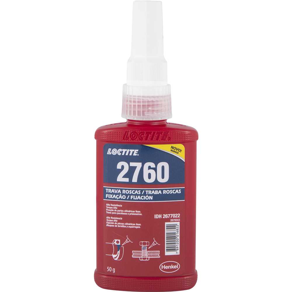 LOCTITE 2760, é um adesivo anaeróbico, que foi desenvolvido para utilização em travamentos e vedações de roscas (elementos roscados), dois em um, multiuso. O produto cura quando confinado entre duas superfícies metálicas e na ausência do ar, evitando afrouxamento e vazamento originados por impacto e/ou vibração. Produto monocomponente, não requer mistura, possui alta resistência.