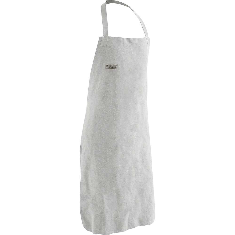 Avental de segurança confeccionado em raspa, tiras em raspa e fivelas na cintura e no pescoço para ajustes.