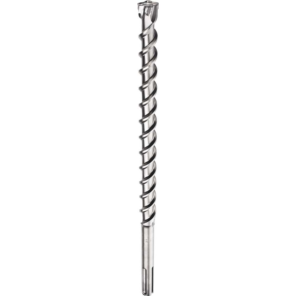 Possui quatro arestas de corte em metal duro e arestas laterais inclinadas que permitem uma perfuração rápida. Design de espirais otimizadas à vibração da broca, oferecendo uma melhor transferência de energia e possibilitando maiores velocidades.
