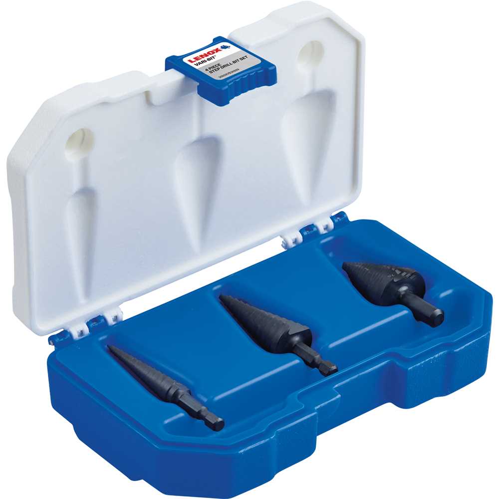 1 Jogo de brocas escalonadas. Acompanha: 3 brocas escalonadas (VB1; VB8; VB11).