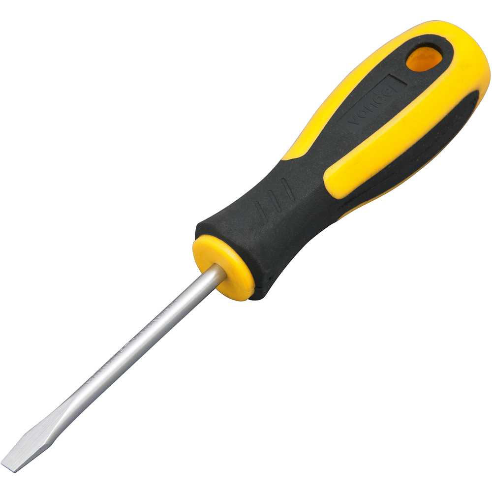 Produzida em aço cromo vanádio, proporcionando maior resistência e durabilidade. Possui acabamento niquelado que oferece maior resistência contra oxidação/corrosão. Conta com ponta magnetizada que facilita tanto a colocação quanto a retirada de parafusos em locais de difícil acesso. Cabo anatômico em polipropileno revestido com borracha termoplástica que garante maior conforto ao operador.