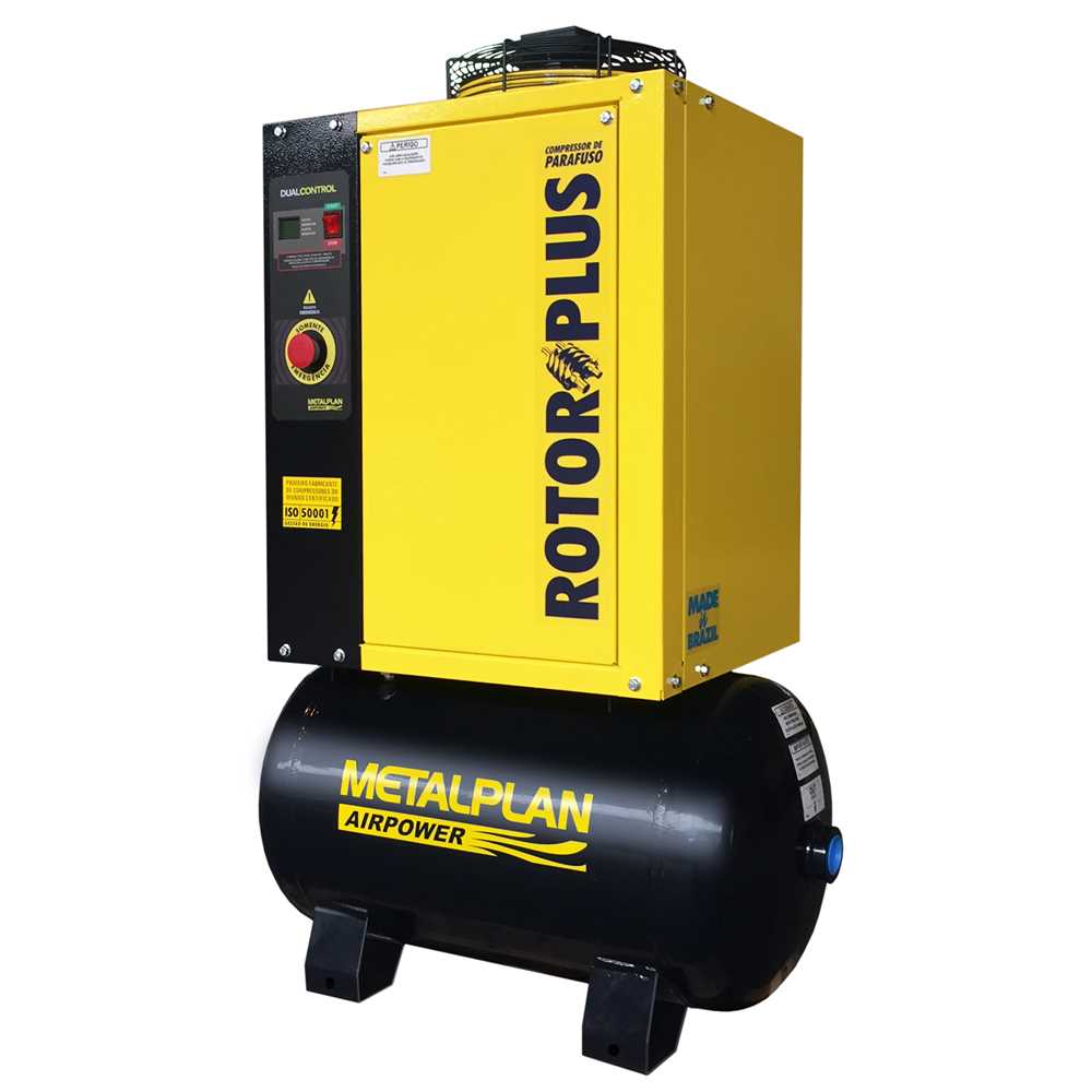 Os compressores de parafuso Rotor Plus são os pioneiros na tecnologia rotary screw para empresas de pequeno e médio portes, tornando-se a principal referência do mercado. Ainda hoje, com atualizações frequentes, apresentam características inovadoras e exclusivas, sem paralelo na concorrência. Mais econômicos, proporcionam uma economia de 60% sobre qualquer compressor de pistão. O retorno do seu investimento acontece em até seis meses. Em comparação de um compressor de parafuso a um compressor de pistão, o compressor de parafuso Rotor Plus apresenta: consumo de energia em 50% menor, custos de manutenção 70% menor, ar comprimido por hora trabalhada 43% maior, nível de ruído 80% menor, operação de 100% em carga (o compressor de pistão só pode operar 70% do tempo em carga, para não fundir). Compressor tem possibilidade de secador e filtros integráveis, geração LEGO, porem estes (secador e filtros) não acompanham o compressor (secador e filtros devem ser adquiridos separadamente). Compressor conta com quadro completo, botão de partida e parada, botão de emergência. No painel de microprocessamento possui: indicador de status (Compressor partindo; Carga/Alívio; Compressor desligado; Falha/Manutenção), horímetro, alerta e mensagem.