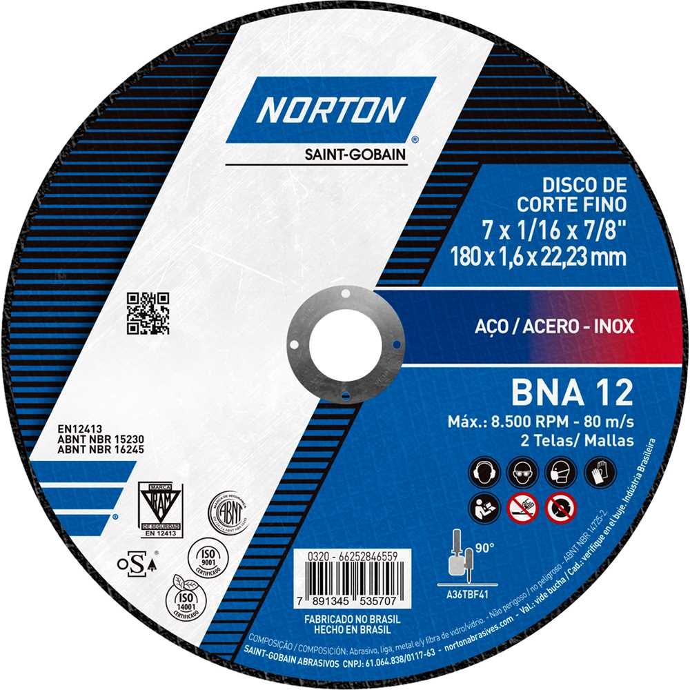 Indicado para cortar aços e suas ligas, inclusive aço inox. Ideal para operações de corte que necessitam excelente acabamento (corte fino). Uso industrial. Não utilizar em serra mármore.