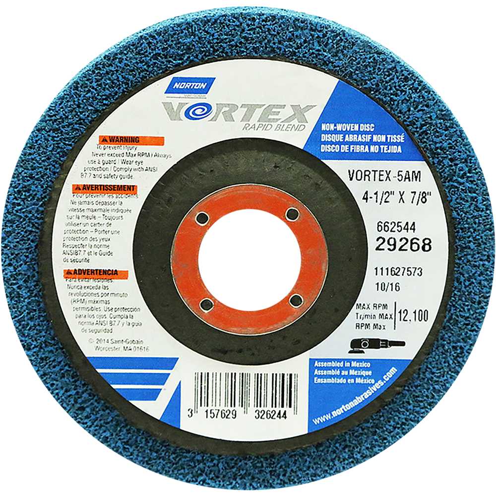 Oferece manuseio confortável e possui longa vida útil, devido ao grão Vortex. Ótimo desempenho para remoção, rebarbação e conformações leves. Realiza acabamento em superfícies metálicas, como limpeza de pontos e respingos de soldas, e acabamento fino de metais em geral. Composto de abrasivo, fibra sintética e adesivo.