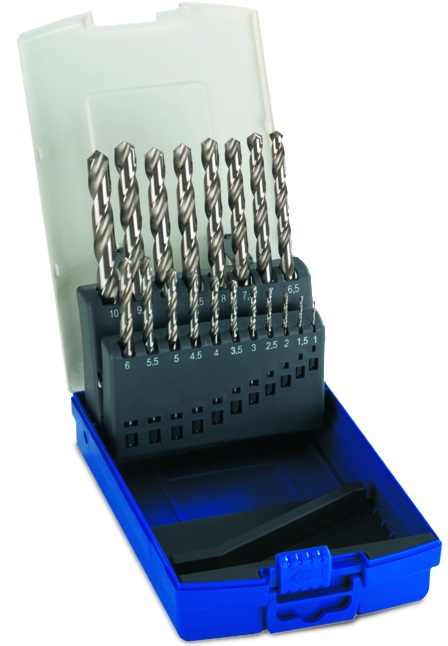 1 Jogo de brocas de aço rápido DIN 338, sendo: 1 broca de 1,0 mm, 1 broca de 1,5 mm, 1 broca de 2,0 mm, 1 broca de 2,5 mm, 1 broca de 3,0 mm, 1 broca de 3,5 mm, 1 broca de 4,0 mm, 1 broca de 4,5 mm, 1 broca de 5,0 mm, 1 broca de 5,5 mm, 1 broca de 6,0 mm, 1 broca de 6,5 mm, 1 broca de 7,0 mm, 1 broca de 7,5 mm, 1 broca de 8,0 mm, 1 broca de 8,5 mm, 1 broca de 9,0 mm, 1 broca de 9,5 mm e 1 broca de 10,0 mm.