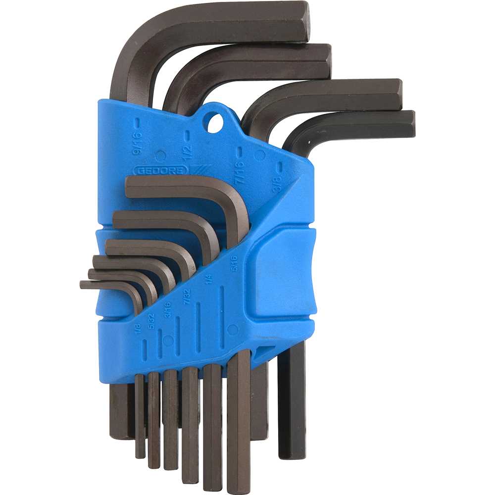1 Jogo de chaves hexagonais (allen), contém 10 peças: 1/8", 5/32", 3/16", 7/32", 1/4", 5/16", 3/8", 7/16", 1/2" e 9/16".