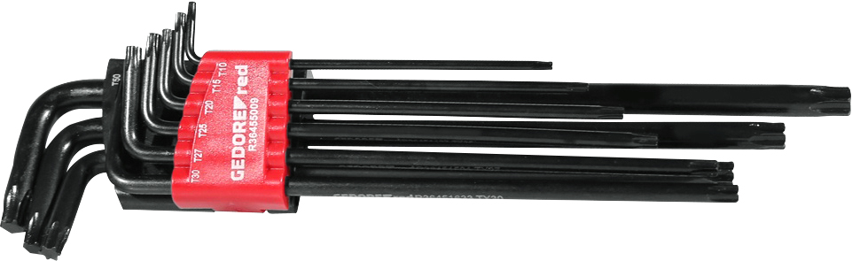 1 Jogo de chaves hexalobular, composto por 1 suporte em plástico com 9 peças, sendo: T10, T15, T20, T25, T27, T30, T40, T45 e T50.