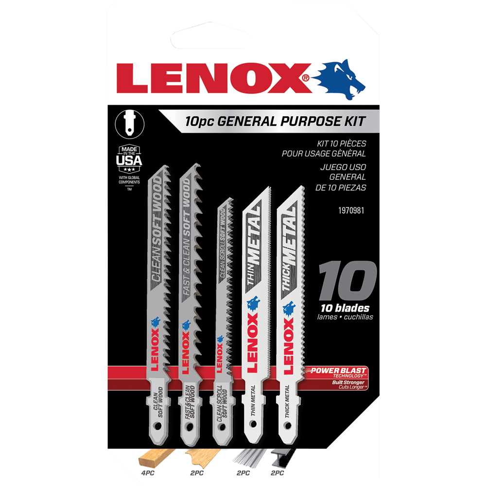 1 Jogo de lâminas para serra tico-tico. Acompanha: 2 lâminas com 10 dentes para madeira macia de 101,6 mm (C450T), 2 lâminas com 6 dentes para madeira macia de 101,6 mm (C416T), 2 lâminas com 20 dentes para madeira macia de 88,9 mm (C320TS), 2 lâminas com 14 dentes para metais com espessuras maiores que 2,4 mm (B314T) e 2 lâminas com 24 dentes para metais com espessuras menores que 3,2 mm.