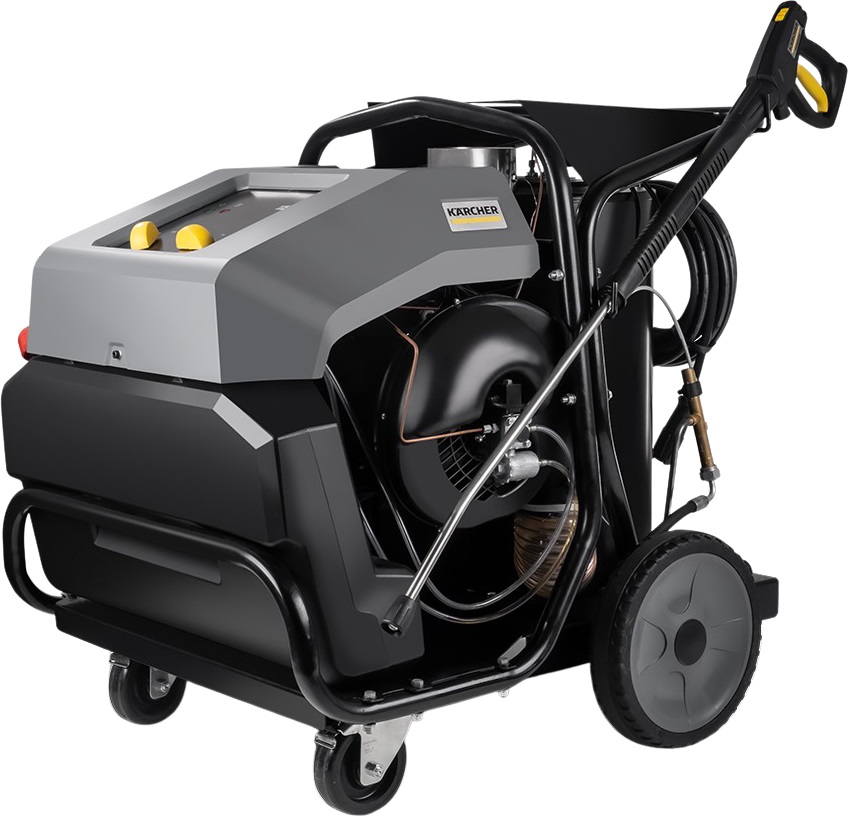 Possui aquecimento de até 98°C. A água quente aumenta o poder de limpeza, permitindo reduzir tanto o tempo quando a quantidade de detergentes utilizados. Bomba refrigerada a água que aumenta a vida útil do equipamento. Cabeçotes e bielas de latão e pistões de cerâmica de alta performance dimensionados para uso diário e contínuo com alto rendimento, resistência e baixo desgaste. Além disto, possui sistema de aquecimento com duplo termostato e proteção contra falta de água. Conta com dois tanques integrados com regulagem de dosagem no painel. Alimentação trifásica.