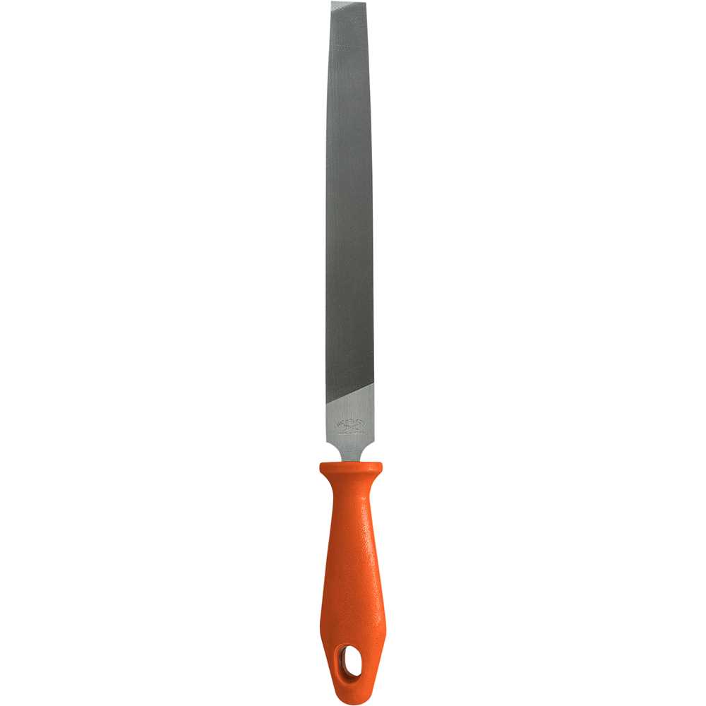 Fabricada com um dos cantos arredondado para respeitar o formato do vão entre os dentes da serra. Possui cabo plástico que proporciona melhor manuseio.