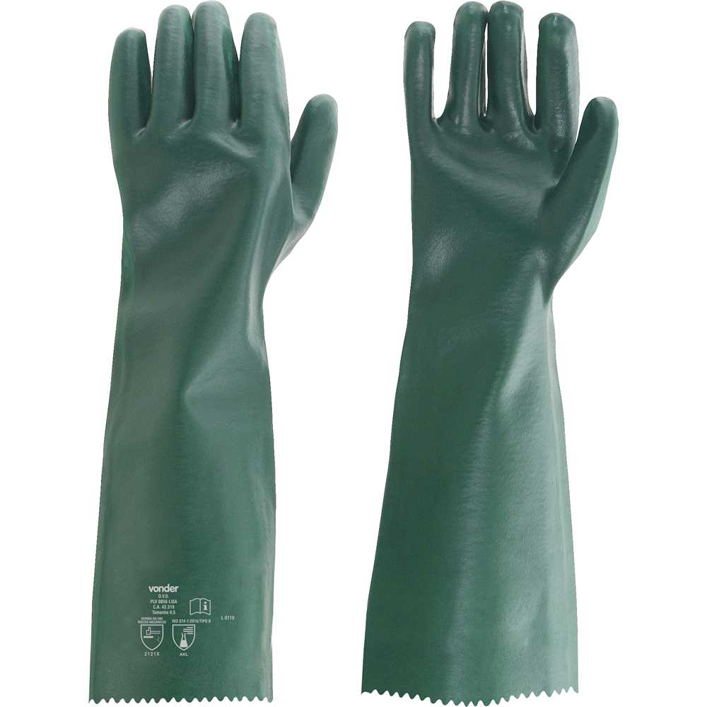 Atende a norma EN-388, que corresponde à proteção do operador contra riscos mecânicos, e ISO 374, que corresponde à proteção do operador contra riscos químicos.