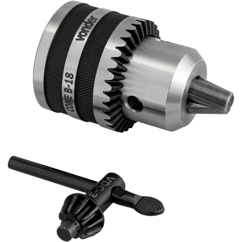 Conta com coroa dentada apoiada sobre esferas, facilitando a abertura e o fechamento das castanhas. Possui castanhas temperadas, proporcionando maior resistência e vida útil, além de capa confeccionada em aço usinado, conferindo maior durabilidade.