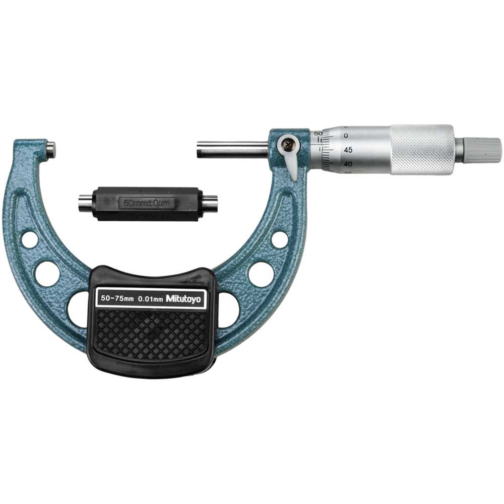1 Micrômetro. Acompanha: chave de ajuste e 1 barra padrão de 50 mm.