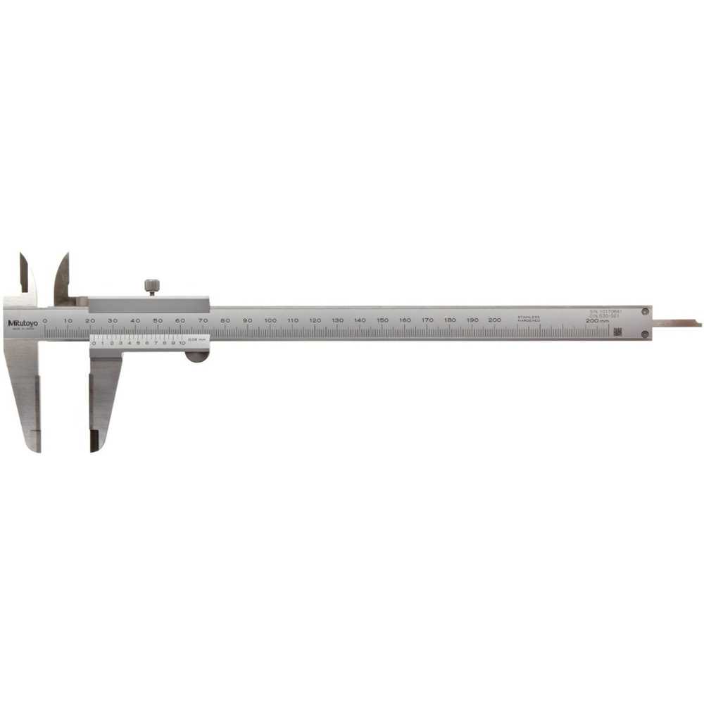 Possui graduação em desnível, que previne o desgaste por atrito, e pequeno ângulo da face do vernier (14 graus), que promove fácil leitura da escala.