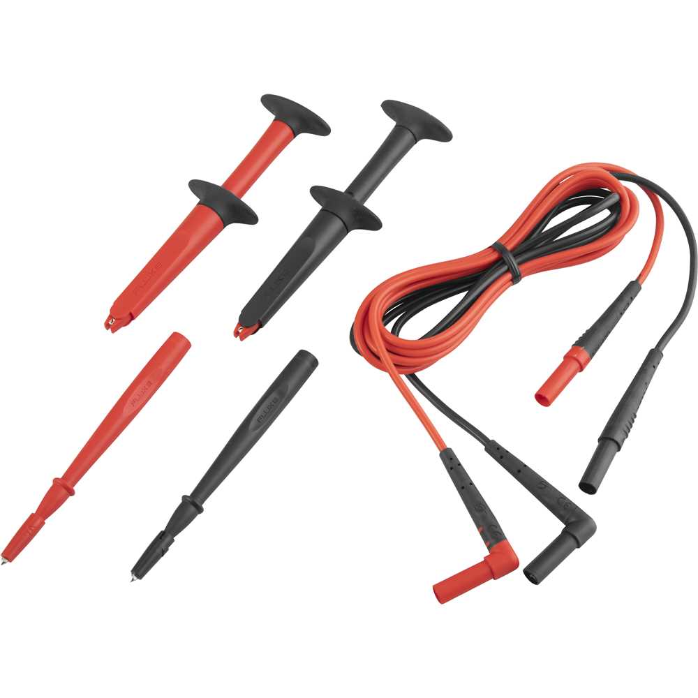 Kit com: TL224 SureGrip™ - conjunto de cabos de teste em silicone (reto a direito), AC220 SureGrip™ - conjunto de clipes-jacaré, TP1 Slim-Reach™ - sondas de teste (lâmina reta).