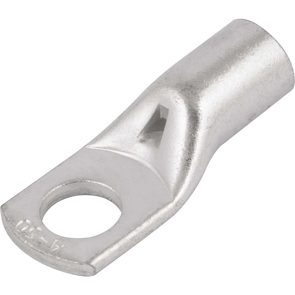 Terminal fabricado em cobre eletrolítico, recobrimento superficial em estanho, compressão com alicate manual ou hidráulico, de fácil aplicação, com deformação circunferencial, hexagonal ou indentação.