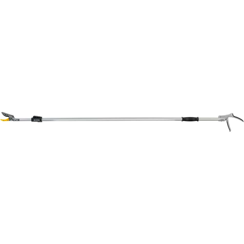 Leve, prática e de fácil manuseio. Possui gatilho com trava, empunhadura móvel emborrachada e cabo telescópico, que proporciona um maior alcance. Conta ainda com lâmina com garras (superior em metal e inferior em plástico), que auxiliam a pega no galho a ser podado, além de evitar derrubar a fruta.